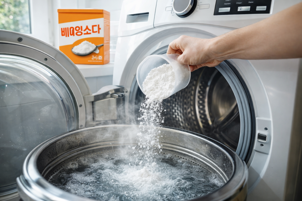👉 세탁조 청소 + 과탄산소다 + 건조
